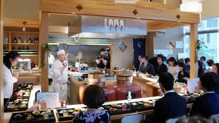 メニューは、豊受季節野菜ふんだんの、おひたし、お造り、煮物、焼き物、豊受黒米ごはん、お味噌汁、デザートと、材料のほとんどが日本豊受自然農で栽培された無農薬、無化学肥料、遺伝子組み換えでない在来種の野菜。色とりどりで目で見て美しく、味わって美味しい上に、体によくて健康になる「卒業式お祝い御膳」でした。