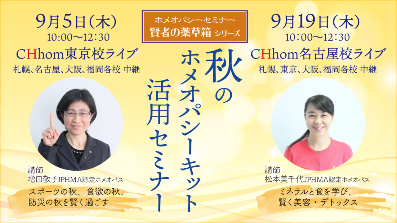 【全国中継】【9/19(木)名古屋ライブ】「賢者の薬草箱シリーズ 秋のホメオパシーキット活用セミナー」